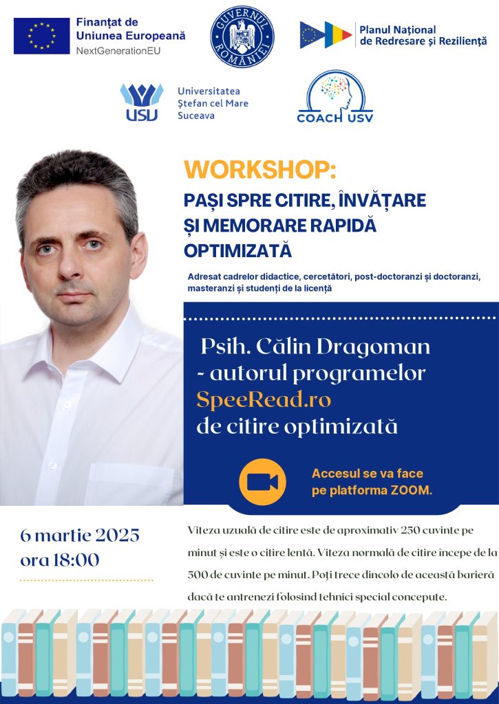 Te invităm, joi 6 martie 2025, ora 18:00 la Workshop-ul ONLINE marca COACH-USV.
